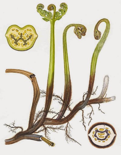 Если плантация папоротника сильно разрослась и мешает, можно накопать корней, они очень крахмалистые. Из них делают муку и добавляют при выпечке хлеба. В муке много клетчатки, она грубовата. Настой корневищ папоротника употребляется в качестве антигельминтного средства.